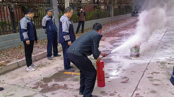 理論學習結(jié)束后 ,教員在消防演練現(xiàn)場向大家講解示范了滅火器的使用方法和注意事項,對滅火器的基本操作要點“提、拔、握、壓”進行了現(xiàn)場示范。參加培訓人員躍躍欲試,輪流使用滅火器進行了初期火災撲救演練。搖晃罐體、拔掉保險銷、抓好噴管、瞄準火焰根部、噴射干粉……整個動作一氣呵成,最后順利撲滅火苗。